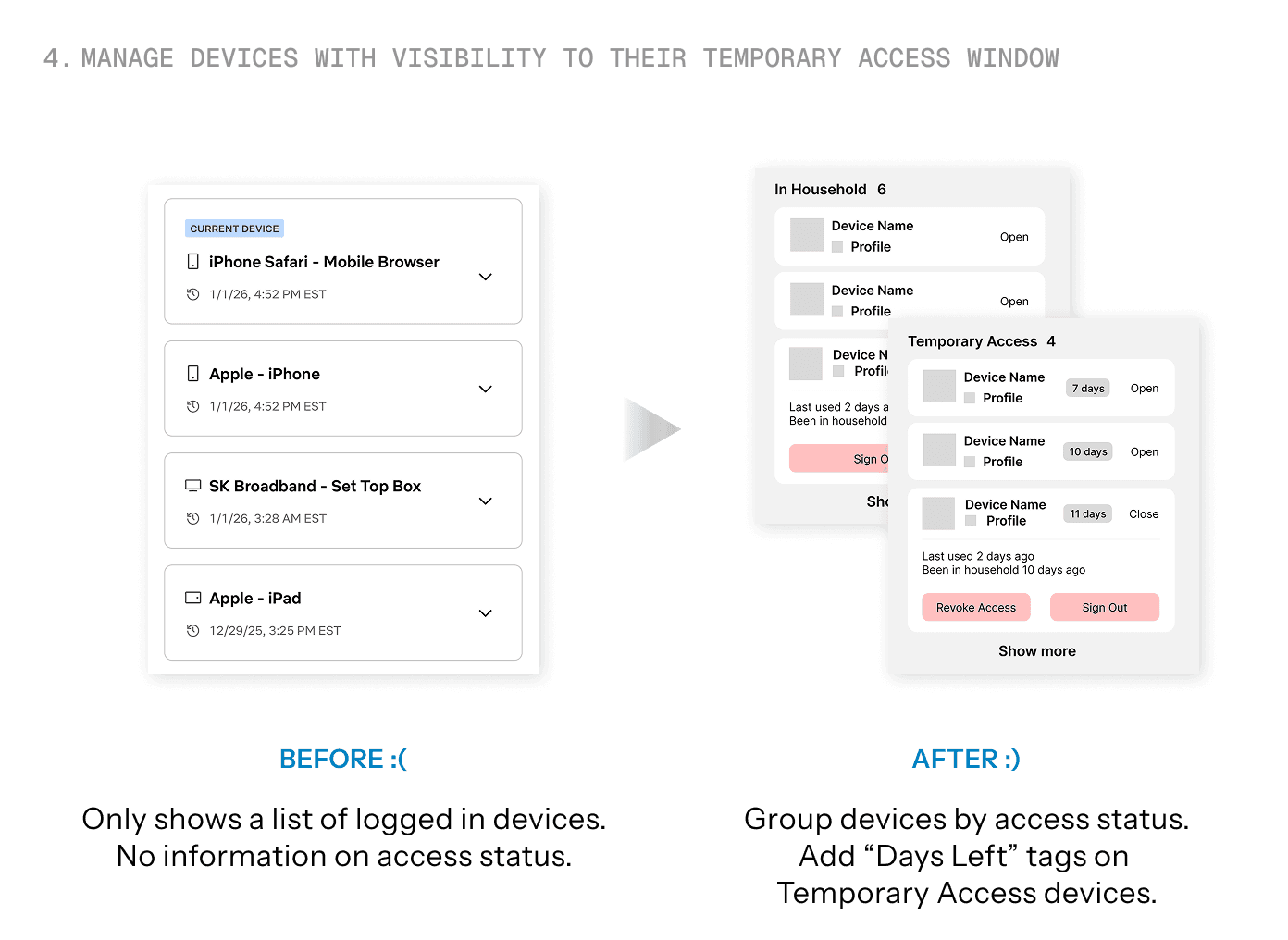 As the list of devices grew longer, users experienced higher friction when completing device management tasks due to the increased cognitive load.