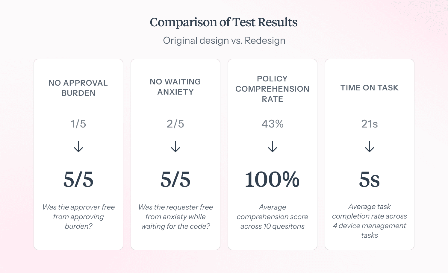 Did the core pain points get resolved? Yes, they sure did! There were significant improvements across all metrics compared to the final redesign, proving the effectiveness of the new features.